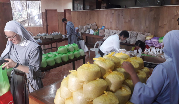 Quelques heures après que frères Charles et frère James eurent prononcé leurs premiers vœux le 15 mars, un confinement strict commençait à Cebu. Très peu de cas de COVID 19 étaient déclarés, mais l’épidémie était déjà bien répandue à Manille. Dans un pays où une large partie de la population vit de salaires journaliers, un confinement devient rapidement problématique pour les familles pauvres qui n’ont ni ressources, ni épargne. Les Frères de Saint-Jean ont alors choisi de venir en aide à leurs voisins des barrios les plus proches, en sollicitant des amis de la communauté à Cebu. Ceux-ci ont répondu très généreusement, ainsi que d’autres donateurs aux États-Unis. Cette mission était un travail commun avec les Sœurs Apostoliques de Saint-Jean : aller au marché, rapporter des gros sacs de légumes, préparer les packs de riz, sucre, lentilles, etc…et enfin organiser la distribution pour environ 130 familles durant deux mois. Ils ont pu toucher du doigt la Providence de Dieu qui veille sur ses enfants les plus pauvres. A présent, plusieurs familles, encouragées par Sœur Mila-Maria commencent à planter leur propre potager.