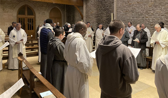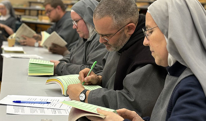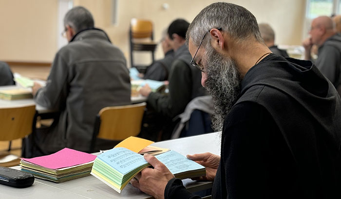 Après la structure de l’Office, c’est au tour des psaumes invitatoires et des tons des cantiques évangéliques (Benedictus et Magnificat) d’être mis en place. Cette réforme est menée d’une main de maître par la CORELI : Commission de la Réforme Liturgique francophone ; leur projet en ligne de mire de cette journée : former des frères et sœurs de chaque prieuré pour qu’ils puissent, à leur tour, accompagner leurs prieurés respectifs dans la réforme de l’Office.
