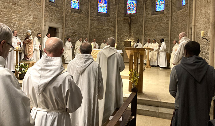 C’est donc autour de cette joyeuse troupe de chantres que nous nous sommes réunis en ce lundi. Frère Vincent, sœur Clémence, frère François-Emmanuel et frère Antoine de Padoue – membres de la CORELI francophone, ainsi que frère Raphaël et sœur Élisée, nous ont aidés à vivre au mieux cette journée. Frère Jacques-Vianney et sœur Karol de Jésus n’ont malheureusement pu être des nôtres.