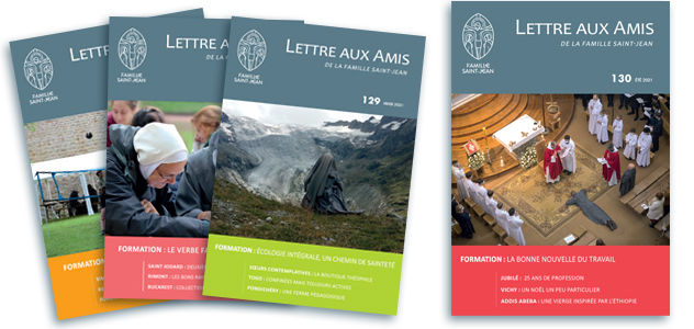 La Lettre Aux Amis de la Famille Saint-Jean est une revue d’une quarantaine de pages qui existe exclusivement en version papier et publiée trois fois par an. Celle-ci vous permettra de garder le lien avec l’enseignement donné par les frères et sœurs à travers la rubrique « Formation ». Quant aux rubriques « Vie de Famille » et « Actualités », elles vous permettront de garder le lien avec la vie des prieurés et les évènements de la Famille Saint-Jean.
